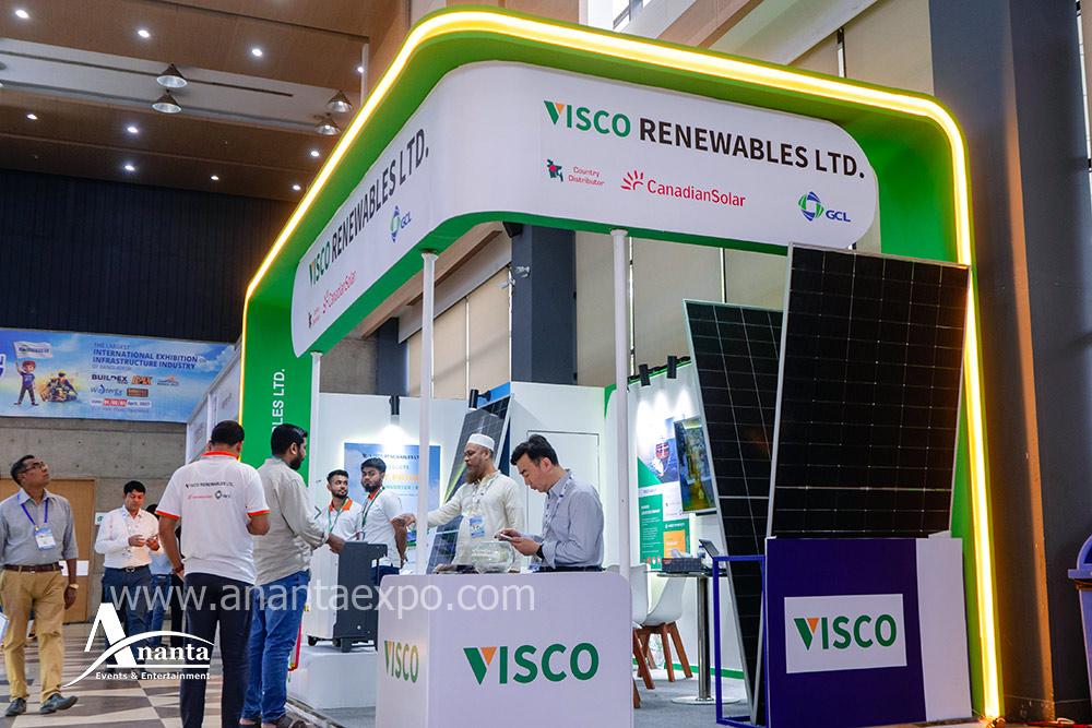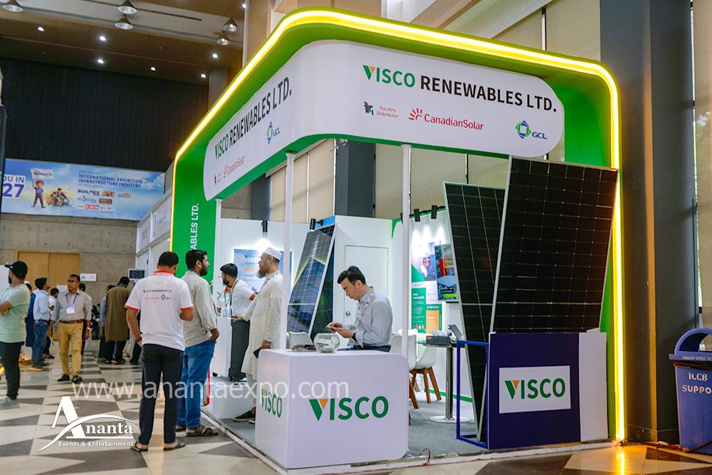Ananta Events & Entertainment designed and fabricated a 6m × 3m custom exhibition booth for Visco Renewables Ltd. at the Savor Solar Exhibition held at ICCB (International Convention City Bashundhara), Dhaka, Bangladesh.